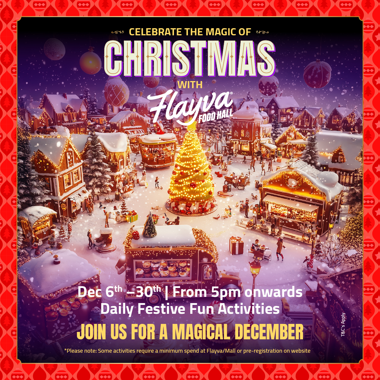 Experience a magical month filled with festive parades, kid's workshops, competitions, live music, Santa appearances, and more—right here at Flayva!