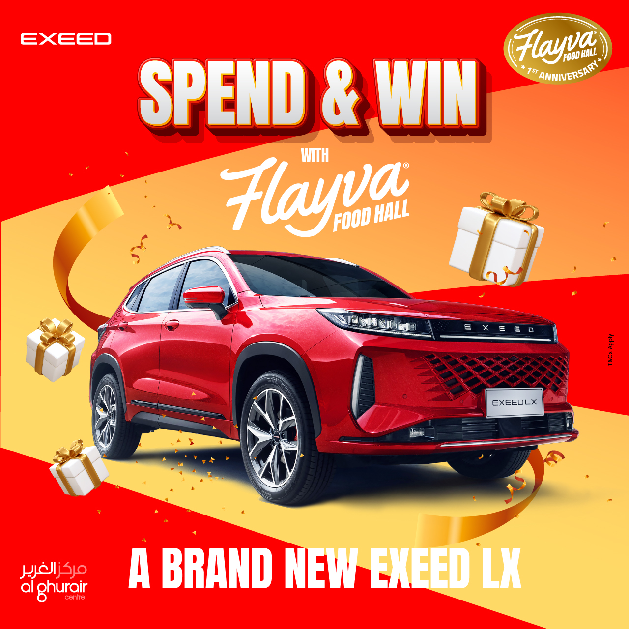 When you spend AED 50 or more at Flayva, you’ll get the chance to WIN a brand-new EXEED LX car!